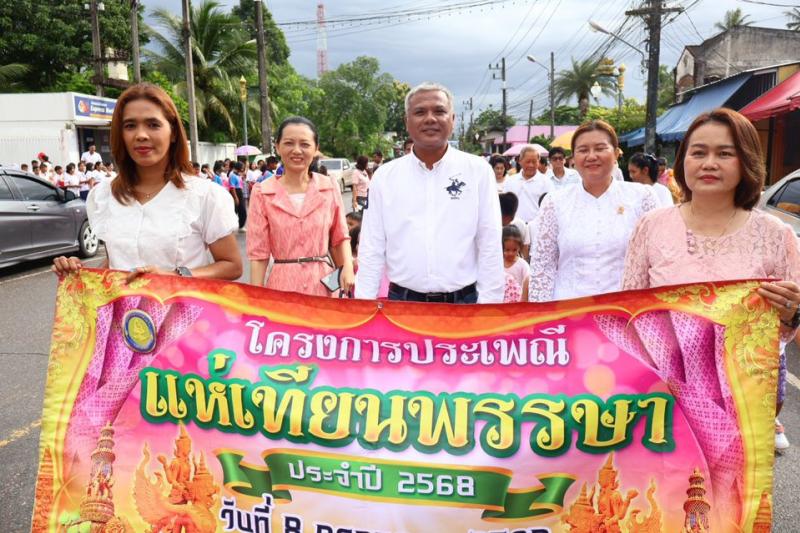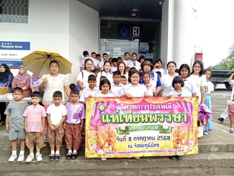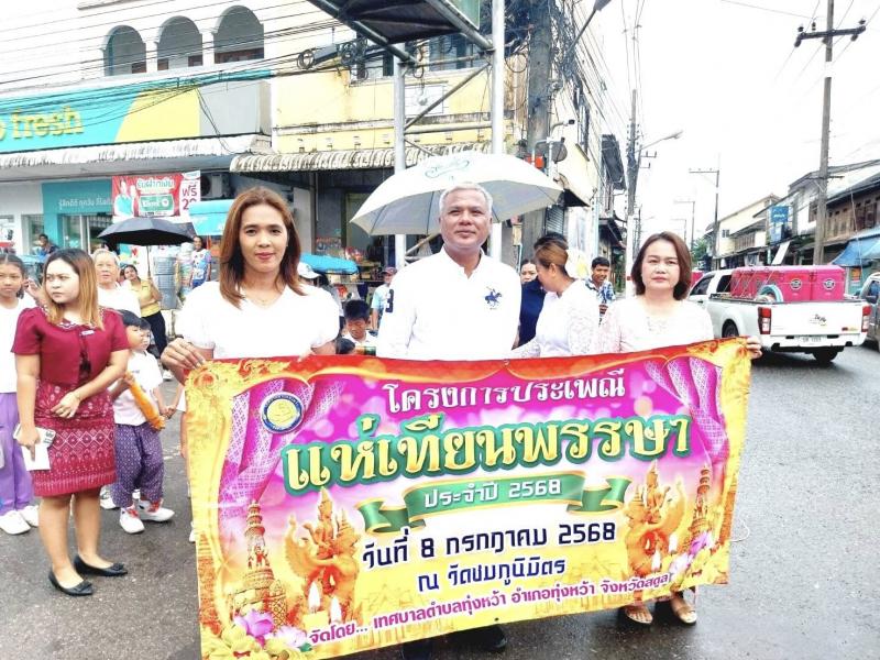 รายละเอียด : เทศบาลตำบลทุ่งหว้าได้จัดโครงการประเพณีแห่เทียนพรรษา ประจำปี 2568 ณ วัดชมภูนิมิตร โดยมีนายเสนีย์ อนันตอัมพร นายกเทศมนตรีตำบลทุ่งหว้า นายธนวรรธ ธรรมชูโชติ รองนายกเทศมนตรีตำบลทุ่งหว้า นายโรม กลัดทอง ผู้อำนวยการกองการศึกษา รักษาราชการแทนปลัดเทศบาล พร้อมด้วยนายกริชชัย ภู่ฉุน นายอำเภอทุ่งหว้า เป็นประธานในพิธี เทศบาลตำบลทุ่งหว้าได้เห็นความสำคัญ ในการส่งเสริมประเพณี วัฒนธรรม ทำนุบำรุงศาสนา และส่งเสริมคุณธรรมจริยธรรมให้กับเด็ก เยาวชน ประชาชน และบุคลากรในหน่วยงาน เทศบาลตำบลทุ่งหว้าจึงได้จัดโครงการประเพณีแห่เทียนพรรษา เพื่อให้คณะผู้บริหาร สมาชิก ข้าราชการ พนักงานเทศบาล บุคลากรทางการศึกษา สถานศึกษา นักเรียน ชุมชน และประชาชนทั่วไป ได้ร่วมสืบสานประเพณี วัฒนธรรม และทำนุบำรุงศาสนา ทั้งยังส่งเสริมให้ตระหนักถึงการมีส่วนร่วมและเห็นคุณค่าวันสำคัญทางพระพุทธศาสนาของไทยอีกด้วย