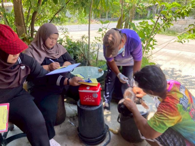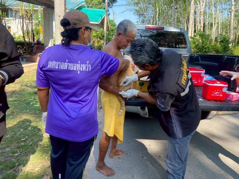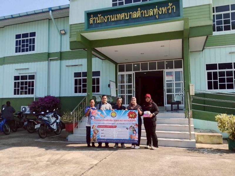 description นายสุกรี โสะนุ้ย ผอ.กองสาธารณสุขและสิ่งแวดล้อม เจ้าหน้าที่กองสาธารณสุขฯ เทศบาลตำบลทุ่งหว้า ร่วมกับเจ้าหน้าที่ปศุสัตว์ อำเภอทุ่งหว้า ดำเนินการฉีดวัคซีป้องกันโรคพิษสุนัขบ้าตามบ้านเรือน เพื่อป้องกันและควบคุมโรคพิษสุนัขบ้าจากสัตว์สู่คน ภายใต้โครงการรณรงค์โรคพิษสุนัขบ้าภายใต้โครงการสัตว์ปลอดโรค คนปลอดภัย จากโรคพิษสุนัขบ้า ตามพระปณิธานศาสตราจารย์ ดร.สมเด็จเจ้าฟ้าฯ กรมพระศรีสวางควัฒ วรขัติยราชนารี ประจำปีงบประมาณ 2569 พื้นที่ดำเนินการในวันนี้ คือ หมู่ที่ 2 ชุมชนท่าเรือ โดยจำนวนสุนัขและแมว จำนวน 88 ตัว person admin