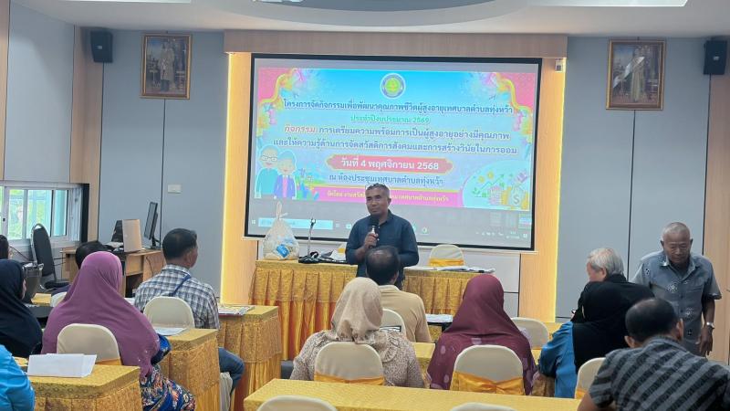 รายละเอียด : กิจกรรมการเตรียมความพร้อมการเป็นผู้สูงอายุอย่างมีคุณภาพและให้ความรู้ด้านการจัดสวัสดิการสังคมและการสร้างวินัยในการออม ณ ห้องประชุมเทศบาลตำบลทุ่งหว้า จัดโดยงานสวัสดิการและสังคมเทศบาลตำบลทุ่งหว้า