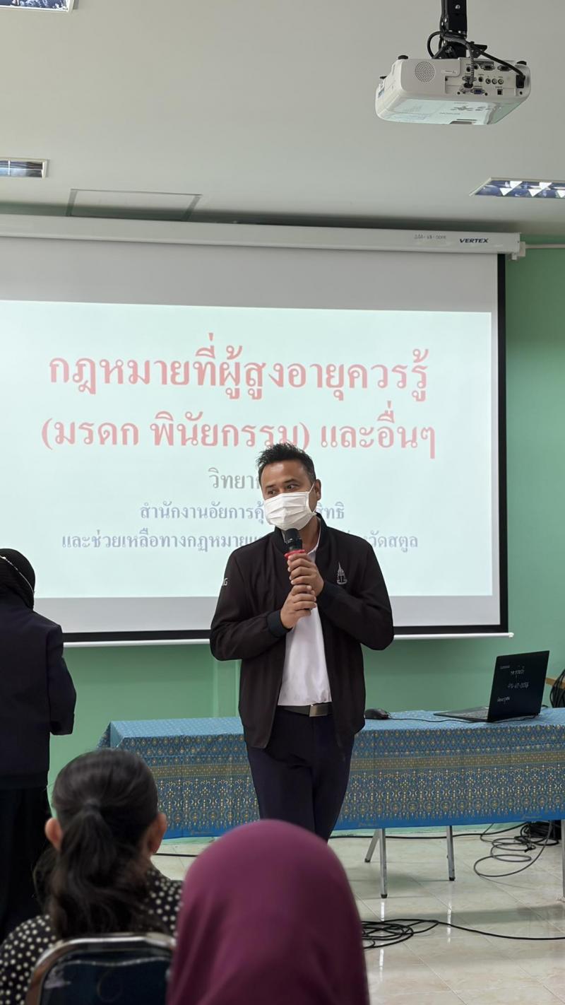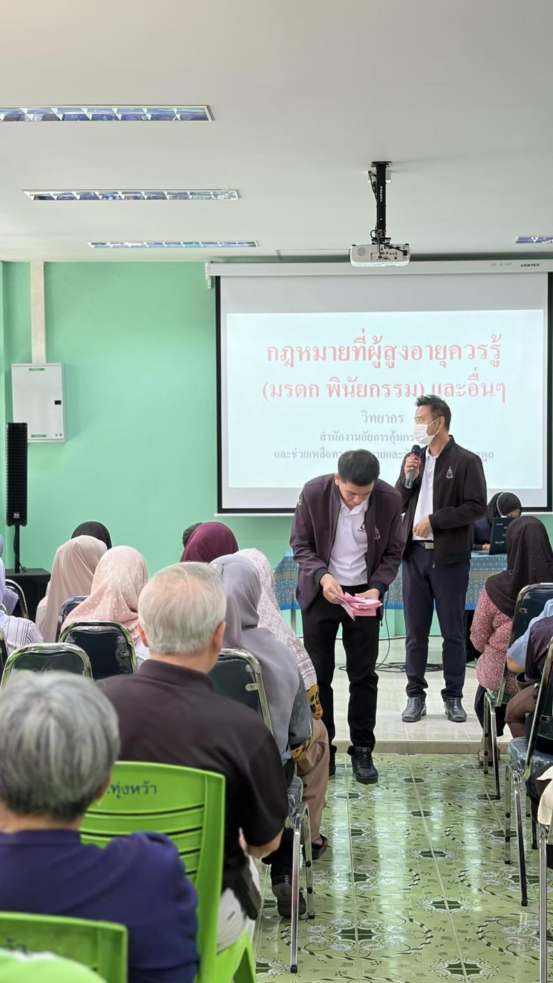 description เทศบาลตำบลทุ่งหว้าได้ดำเนินการจัดโครงการจัดกิจกรรมเพื่อพัฒนาคุณภาพชีวิตผู้สูงอายุ ประจำปีงบประมาณ 2569 เพื่อส่งเสริมให้ผู้สูงอายุได้พัฒนาตนเองทั้งทางร่างกาย จิตใจ อารมณ์ สังคม และมีโอกาสแลกเปลี่ยนประสบการณ์ซึ่งกันและกัน ได้ตระหนักถึงการเข้าสู่สังคมผู้สูงอายุอย่างมีคุณภาพ และได้มีโอกาสเข้าถึงสิทธิต่างๆที่พึงจะได้รับการดูแลจากหน่วยงานภาครัฐ โดยมีคุณณปก์ภรณ์ บิลหีม อัยการจังหวัดประจำสำนักงานอัยการสูงสุด ให้เกียรติเป็นวิทยากร บรรยายเรื่อง กฎหมายที่ผู้สูงอายุควรรู้ (มรดกพินัยกรรมฯ) ณ ศูนย์พัฒนาคุณภาพชีวิตและส่งเสริมอาชีพผู้สูงอายุเทศบาลตำบลทุ่งหว้า person admin