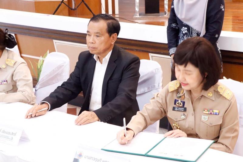 รายละเอียด : นายเสนีย์ อนันตอัมพร นายกเทศมนตรีตำบลทุ่งหว้า ร่วมลงนามบันทึกข้อตกลงความร่วมมือ (MOU) ขับเคลื่อนการดำเนินงาน “อนามัยแม่และเด็ก 1,000 วันแรกของชีวิต” โดยมีนางสาวดุษฎี พฤกษเศรษฐ รองผู้ว่าราชการจังหวัดสตูล เป็นประธานในพิธีเปิด นายสัมฤทธิ์ เลียงประสิทธิ์ นายกองค์การบริหารส่วนจังหวัดสตูล กล่าวรายงานวัตถุประสงค์ของการจัดงาน