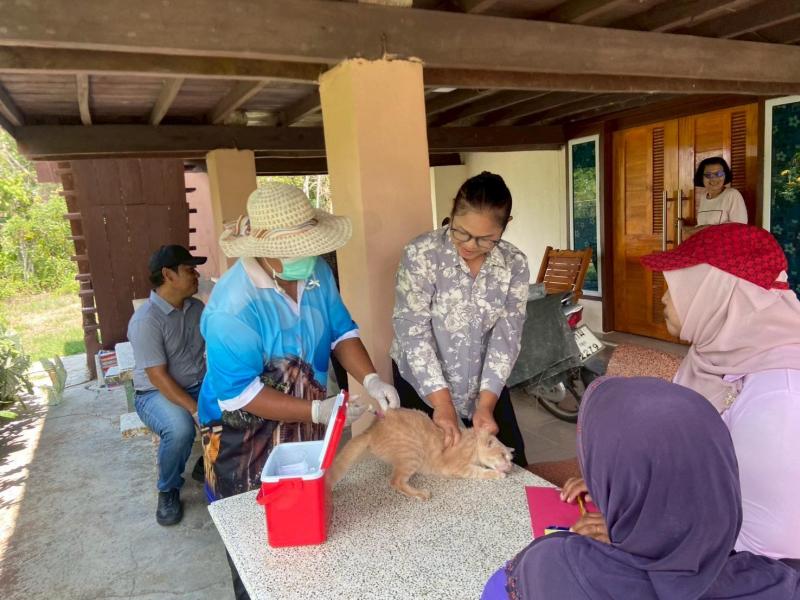 description นายสุกรี โสะนุ้ย ผอ.กองสาธารณสุขและสิ่งแวดล้อม เจ้าหน้าที่กองสาธารณสุขฯ เทศบาลตำบลทุ่งหว้า ร่วมกับเจ้าหน้าที่ปศุสัตว์ อำเภอทุ่งหว้า ดำเนินการฉีดวัคซีป้องกันโรคพิษสุนัขบ้าตามบ้านเรือน เพื่อป้องกันและควบคุมโรคพิษสุนัขบ้าจากสัตว์สู่คน ภายใต้โครงการรณรงค์โรคพิษสุนัขบ้าภายใต้โครงการสัตว์ปลอดโรค คนปลอดภัย จากโรคพิษสุนัขบ้า ตามพระปณิธานศาสตราจารย์ ดร.สมเด็จเจ้าฟ้าฯ กรมพระศรีสวางควัฒ วรขัติยราชนารี ประจำปีงบประมาณ 2569 พื้นที่ดำเนินการในวันนี้ คือ ชุมชนท่าอ้อยและชุมชนในบ้าน โดยสุนัขและแมวจำนวน 91 ตัว person admin