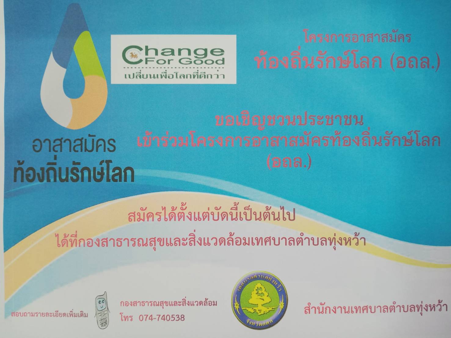 ชื่อเรื่อง : ประชาสัมพันธ์ ขอเชิญชวนประชาชนเข้าร่วมโครงการอาสาสมัครท้องถิ่นรักษ์โลก (อถล.)