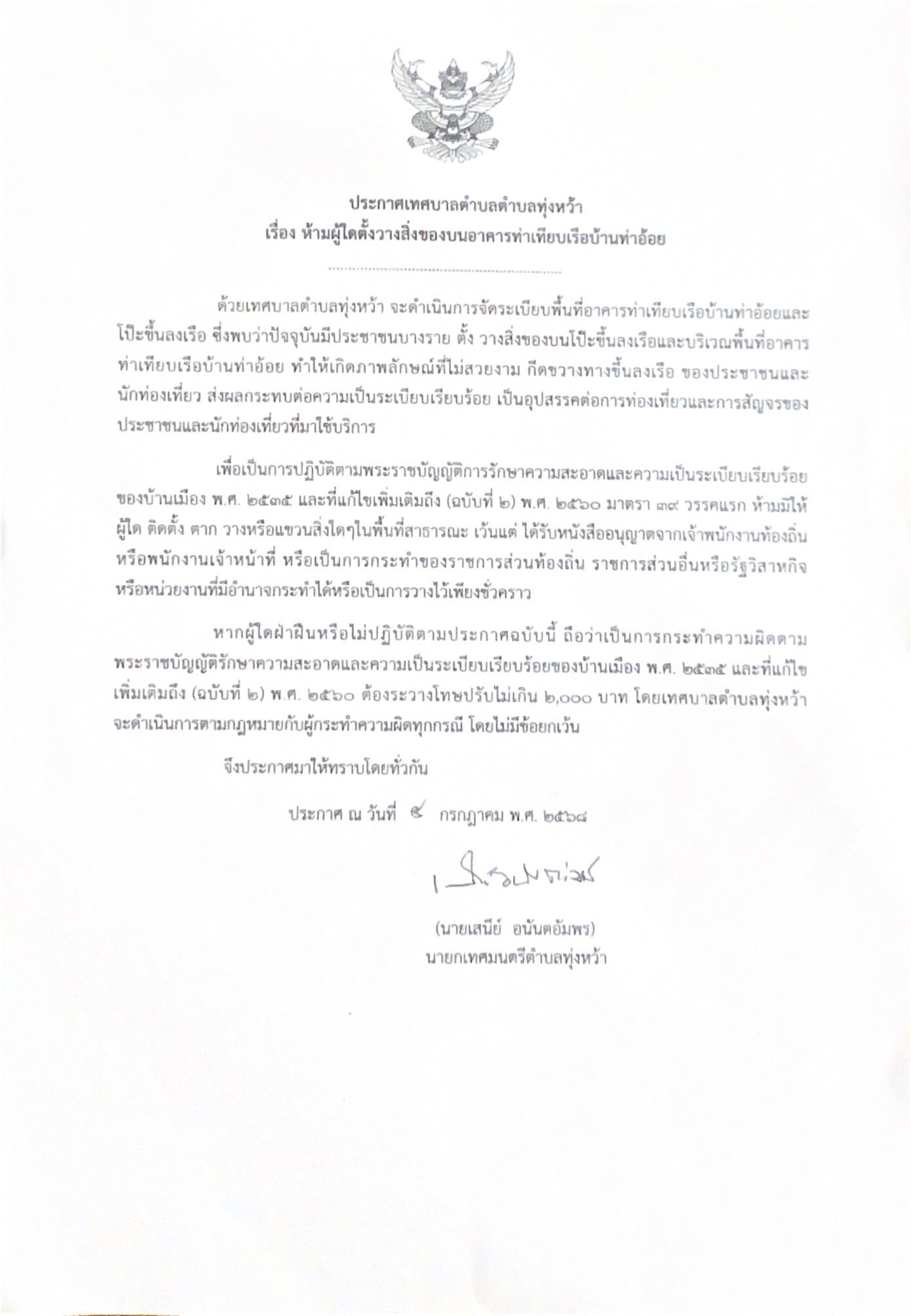 ห้ามผู้ใดตั้งวางสิ่งของบนอาคารท่าเทียบเรือบ้านท่าอ้อย