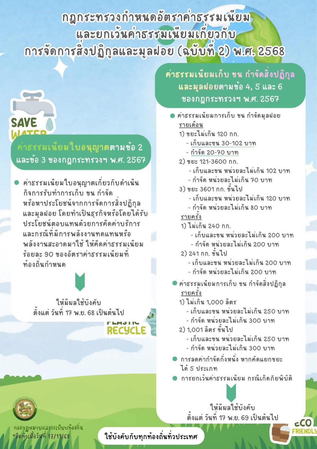 สรุปสาระสำคัญกฎกระทรวงกำหนดอัตราค่าธรรมเนียมและยกเว้นค่าธรรมเนียมเกี่ยวกับการจัดการสิ่งปฏิกูลและมูลฝอย (ฉบับที่ 2) พ.ศ. 2568