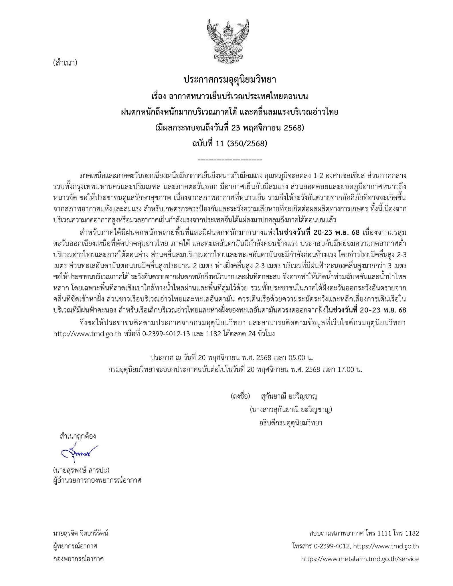 (มีผลกระทบจนถึงวันที่ 23 พฤศจิกายน 2568)