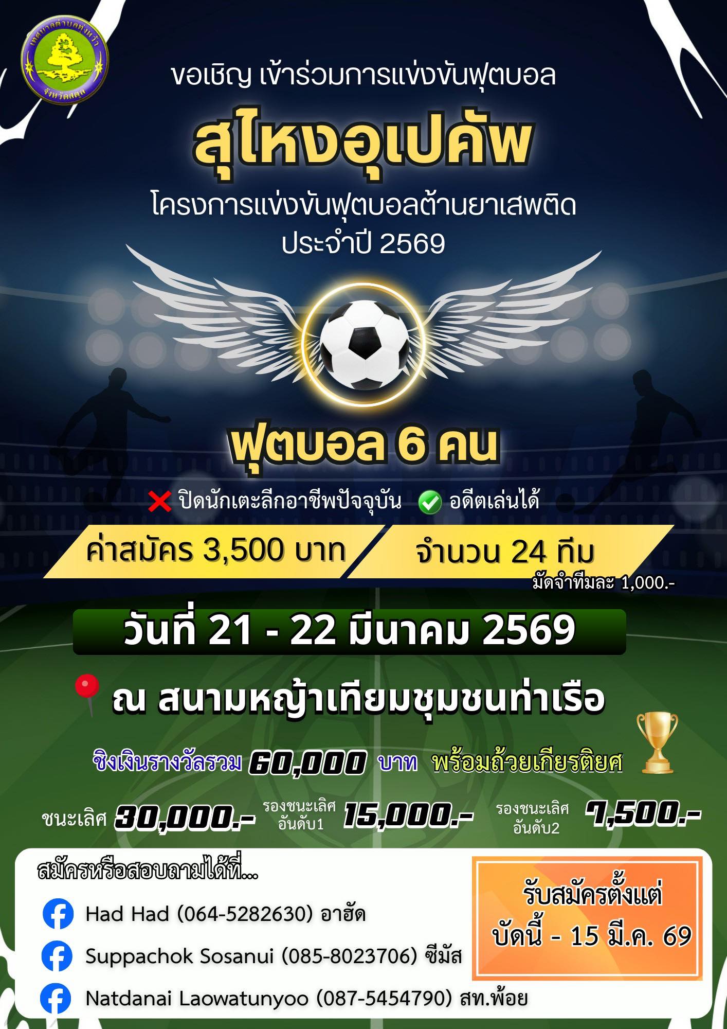 ขอเชิญเข้าร่วมการแข่งขันฟุตบอล 6 คน รายการ “สุไหง-อุเปคัพ 2569“