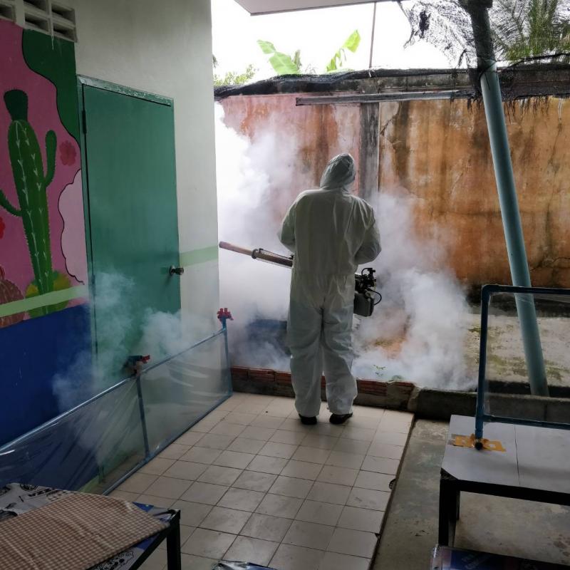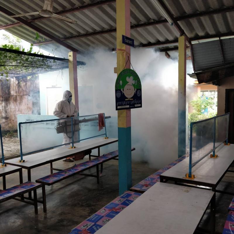 วันที่ 25 พฤษภาคม 2565 ฉีดพ่นหมอกควันป้องกันไข้เลือดออกในโรงเรียนในเขตเทศบาลตำบลทุ่งหว้า (ครั้งที่ 2)