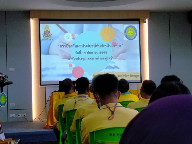 สำนักงาน ป.ป.ช. ให้ความรู้เรื่องการป้องกันผลประโยชน์ทับซ้อนในองค์ กฏหมายทั่วไป และสำนักงานยุติธรรมจังหวัดสตูล ให้ความรู้เรื่องการคุ้มครองสิทธิและการช่วยเหลือทางกฏหมาย วันที่ 14 กันยายน 2565 ณ ห้องประชุมเทศบาลตำบลทุ่งหว้า (6 ภาพ)