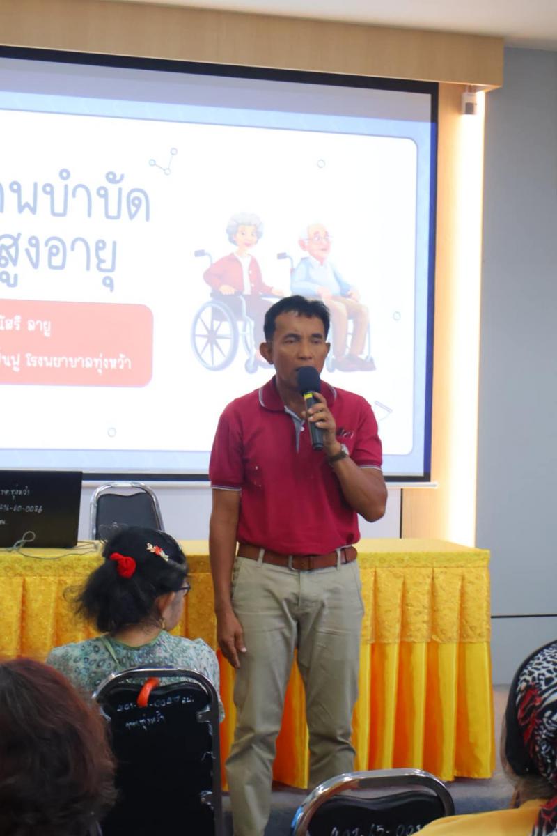 รายละเอียด : วันที่ 5 กุมภาพันธ์ 2568 เวลา 13.00 น. | กิจกรรมโรงเรียนผู้สูงอายุ ครั้งที่ 5 เทศบาลตำบลทุ่งหว้า ได้จัดกิจกรรมโครงการพัฒนาคุณภาพชีวิตผู้สูงอายุ (กิจกรรมโรงเรียนผู้สูงอายุ) ประจำปีงบประมาณ 2568 ระหว่างเดือนธันวาคม 2567 - เดือนพฤษภาคม 2568 กิจกรรมที่ 5 บรรยายกายภาพบำบัดเพื่อสุขภาพ เพื่อฟื้นฟูร่างกาย และเสริมสร้างความสามารถในการใช้ร่างกาย เพื่อให้ใช้ชีวิตประจำวันได้ดีขึ้น โดยมีวิทยากร นักกายภาพบำบัดจากโรงพยาบาลทุ่งหว้า ณ ห้องประชุมเทศบาลตำบลทุ่งหว้า