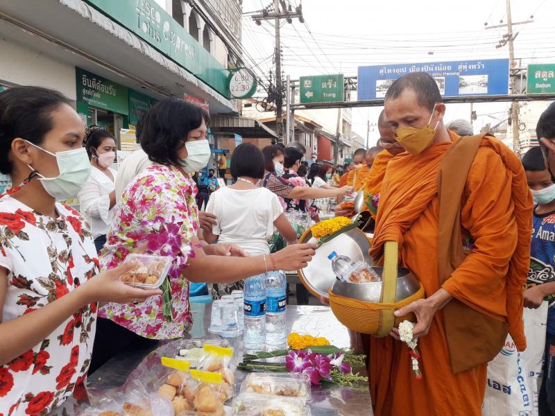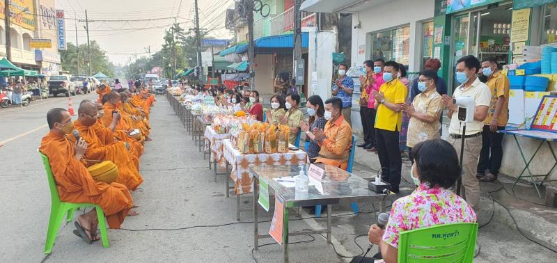 รายละเอียด : วันที่ 13 เมษายน 2565 เวลา 07.00 น. นายพิชญพัทธ์ เรืองชาตรี นายอำเภอทุ่งหว้า พร้อมด้วยปลัดอำเภอ และหัวหน้าส่วนราชการ นายเสนีย์ อนันตอัมพร นายกเทศมนตรีตำบลทุ่งหว้า พร้อมภรรยา นางพิมรดา อนันตอัมพร ประธานสตรีเทศบาลตำบลทุ่งหว้า นายสนิท เอี้ยวซิโป รองนายกเทศมนตรีฯ นายสมพร สินจรูญศักดิ์ ประธานสภาฯ สมาชิกสภาฯ ว่าที่ ร.ต.หญิง อหนัดนงค์ รัตนวิภา ผอ.กองการศึกษา นายโรม กลัดทอง อดีต ผอ.กองการศึกษา เจ้าหน้าที่เทศบาล กองการศึกษา และพี่น้องพุทธศาสนิกชน ได้ร่วมกันทำบุญตักบาตร เนื่องในวันสงกรานต์ ประจำปีพุทธศักราช 2565 ณ. บริเวณหน้าตลาดสดเทศบาลตำบลทุ่งหว้า. ซึ่งกิจกรรมทำบุญตักบาตรในครั้งนี้ ได้มีมาตรการเฝ้าระวังป้องกันและควบคุมการแพร่ระบาดของโรคโรคติดเชื้อโควิค-19 โดยในช่วงเวลา 06.30 น.ได้เปิดลงทะเบียนคัดกรอง ก่อนเข้าร่วมกิจกรรม ต่อมาในเวลา 07.00 น. จึงจะเริ่มพิธีทำบุญตักบาตรพระสงฆ์ และสามเณร รวม 34 รูป