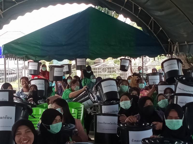 3. สอน/สาธิตการจัดทำถังขยะเปียกครัวเรือนด้วยวิธีการทำถังขยะเปียกลดโลก ร้อนครัวเรือน