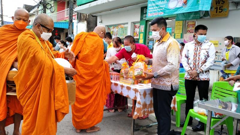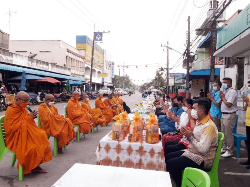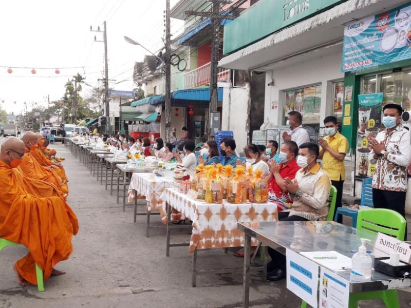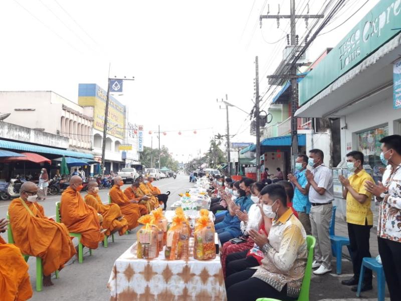 รายละเอียด : กองการศึกษา เทศบาลตำบลทุ่งหว้า ได้ดำเนินการจัดโครงการจัดกิจกรรมวันสำคัญทางพุทธศาสนา และวัฒนธรรมไทย กิจกรรมสัปดาห์ส่งเสริมพระพุทธศาสนา เนื่องในวันมาฆบูชา ประจำปี พ.ศ.2565 กิจกรรมทำบุญตักบาตร ในวันที่ 16 กุมภาพันธ์ 2565 เมือเวลา 07.00 น. นายพิชญพัทธ์ เรืองชาตรี นายอำเภอทุ่งหว้า นายเสนีย์ อนันตอัมพร นายกเทศมนตรี ทต.ทุ่งหว้า พร้อมภรรยา นางพิมรดา อนันตอัมพร นายประเสริฐ แซ่อึ้ง สมาชิกองค์การบริหารส่วนจังหวัดสตูล นายสนิท เอี้ยวซิโป รองนายกเทศมนตรี ทต.ทุ่งหว้า นายโรม กลัดทอง ผอ.กองการศึกษาเทศบาล ปลัดอำเภอ หัวหน้าส่วนราชการอำเภอทุ่งหว้า เจ้าหน้าที่เทศบาลกองการศึกษา และพี่น้องพุทธศาสนิกชนในเขตพื้นที่เทศบาล ได้ร่วมกันทำบุญตักบาตร เนื่องในวันมาฆบูชา ประจำปีพุทธศักราช 2565 ณ.บริเวณหน้าตลาดสดเทศบาลตำบลทุ่งหว้า. โดยในการกำหนดพีธีทำบุญตักบาตรในครั้งนี้ ได้มีมาตรการป้องกันและคัดกรองบุคคล เพื่อลดอัตราการแพร่ระบาดโรคติดเชื้อโควิค-19 ในเขตพื้นที่เทศบาล ช่วงเวลา 06.30 น.ได้เปิดลงทะเบียน และวัดอุณหภูมิก่อนเข้าร่วมกิจกรรม ต่อมาในเวลา 07.00 น. จึงจะเริ่มพีธีทำบุญตักบาตรพระสงฆ์