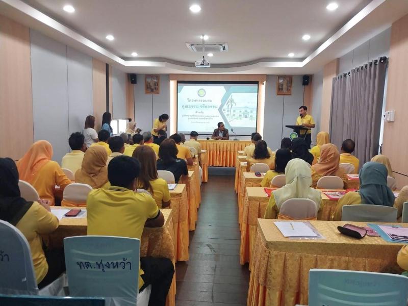 รายละเอียด : เทศบาลตำบลทุ่งหว้า ได้ตระหนักถึงความสำคัญของการพัฒนาคุณธรรมจริยธรรมในหน่วยงานให้เป็นรูปธรรม สอดคล้องกับ แผนปฏิบัติการด้านการส่งเสริมคุณธรรมแห่งชาติ ระยะที่ 2 (พ.ศ. 2566 - 2570) และร่วมขับเคลื่อนเป้าหมายของยุทธศาสตร์ชาติ 20 ปี (พ.ศ. 2561 - 2580) ในการสร้าง ”สังคมคุณธรรม“ ด้วยการปลูกฝังคุณธรรม 4 ประการ ได้แก่ พอเพียง วินัย สุจริต และจิตอาสา ควบคู่กับการยึดมั่นในหลักธรรมทางศาสนา หลักปรัชญาเศรษฐกิจพอเพียง และวัฒนธรรมไทยที่ดีงาม เพื่อก่อสร้างคนไทยให้เป็น ”มนุษย์ที่สมบูรณ์“ ซึ่งเป็นเป้าหมายหลักของแผนฯ ดังกล่าว อีกทั้งยังเป็นการส่งเสริมให้ผู้บริหาร สมาชิกสภาเทศบาล และพนักงานเทศบาล ยึดถือและปฏิบัติตาม ประมวลจริยธรรมของเจ้าหน้าที่รัฐ ประมวลจริยธรรมของสมาชิกสภาท้องถิ่น และประมวลจริยธรรมของผู้บริหารท้องถิ่น อย่างเคร่งครัดและยั่งยืน โดยมีนายเสนีย์ อนันตอัมพร นายกเทศมนตรีตำบลทุ่งหว้า คณะผู้บริหาร สมาชิกสภาเทศบาล พนักงานเทศบาล ลูกจ้างประจำและพนักงานจ้าง เข้าร่วมการอบรมการอบรมในครั้งนี้ ได้รับเกียรติจากนายทศพล ชายเกตุ ตำแหน่งนักส่งเสริมการปกครองท้องถิ่นชำนาญการ (ท้องถิ่นอำเภอเมืองสตูล) มาเป็นวิทยากรการบรรยายและแลกเปลี่ยนประสบการณ์ หัวข้อ เสริมสร้างบุคลากรสู่การเป็นองค์กรคุณธรรม และการพัฒนาองค์กรเพื่อท้องถิ่นพัฒนา ณ ห้องประชุมเทศบาลตำบลทุ่งหว้า
