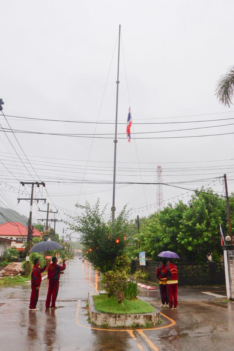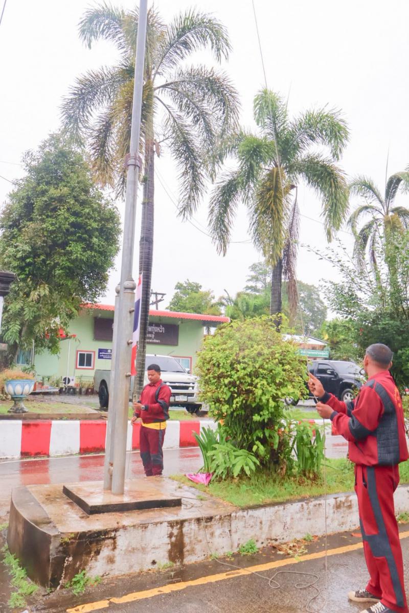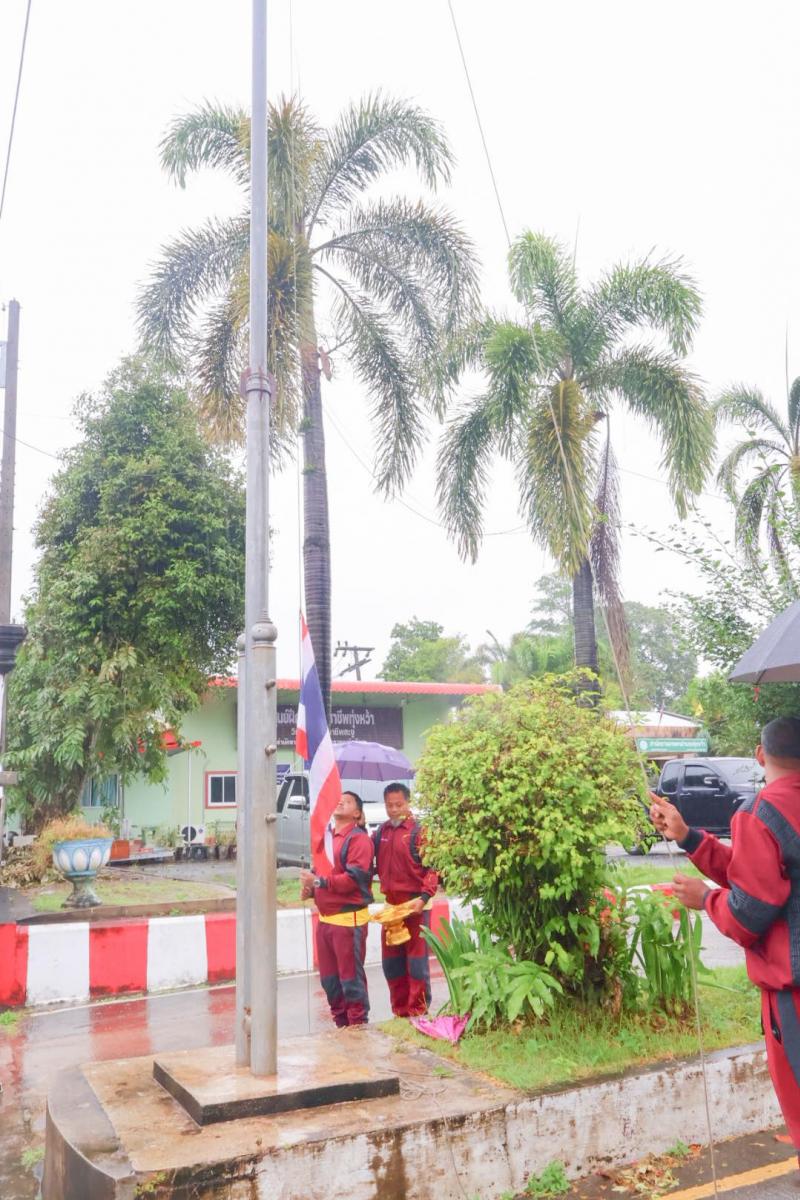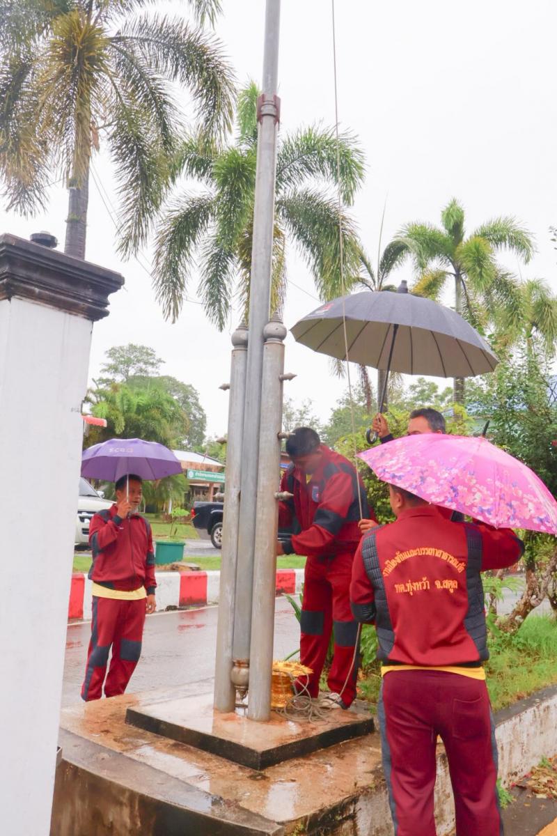 เทศบาลตำบลทุ่งหว้าร่วมกิจกรรมวันพระราชทานธงชาติไทย ประจำปี 2568 ท่ามกลางสายฝนโปรยปราย