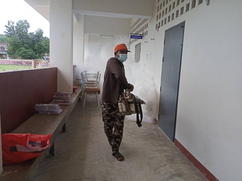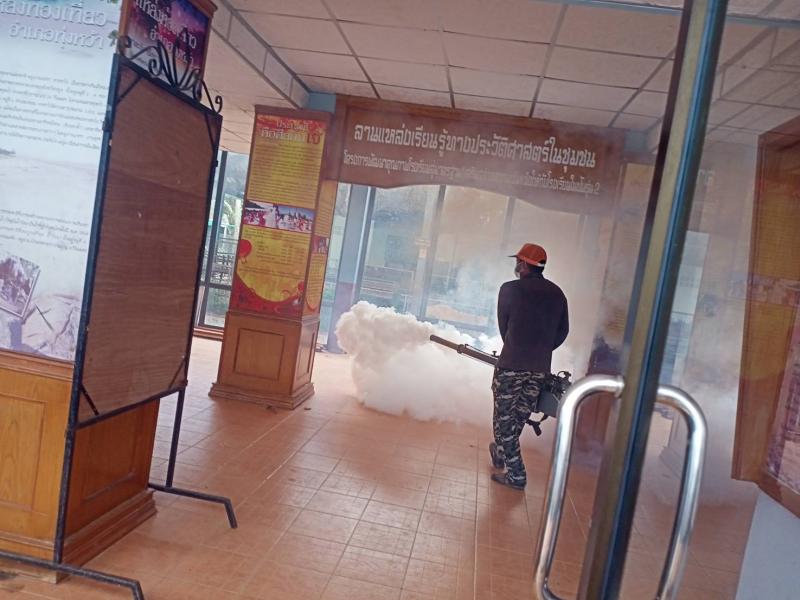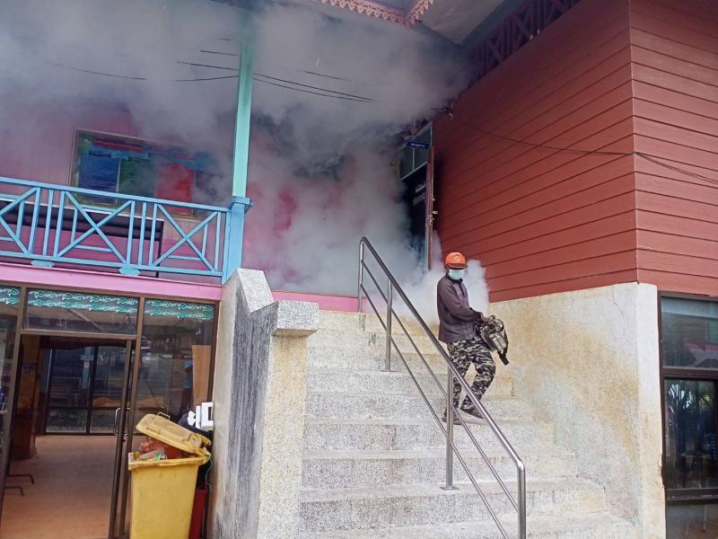 ฉีดพ่นหมอกควันป้องกันไข้เลือดออกในชุมชนในเขตเทศบาลตำบลทุ่งหว้า