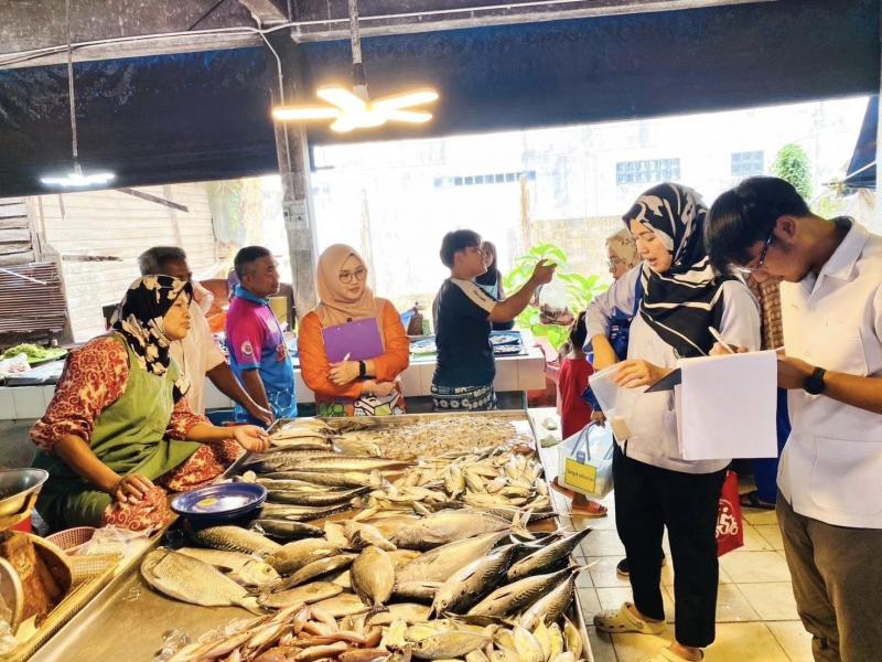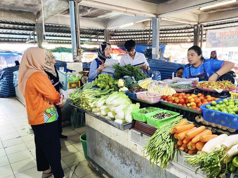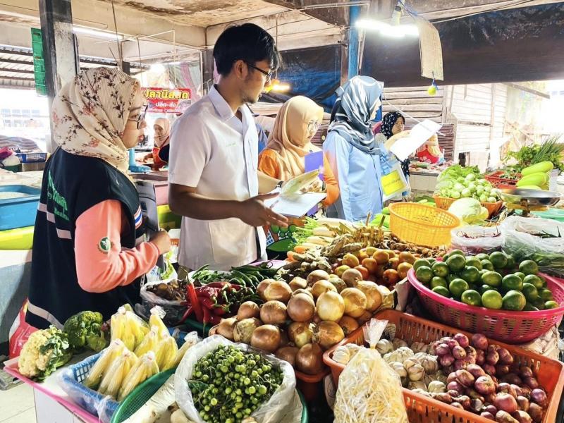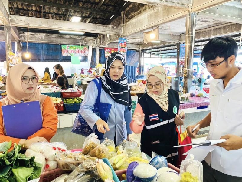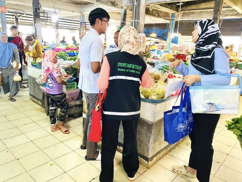 ลงพื้นที่ตลาดสดเทศบาลตำบลทุ่งหว้า ดำเนินการเก็บตัวอย่างอาหารเพื่อเฝ้าระวังความปลอดภัยจากสารปนเปื้อน 6 ชนิด