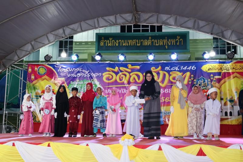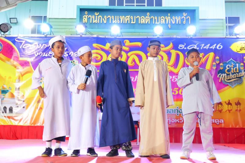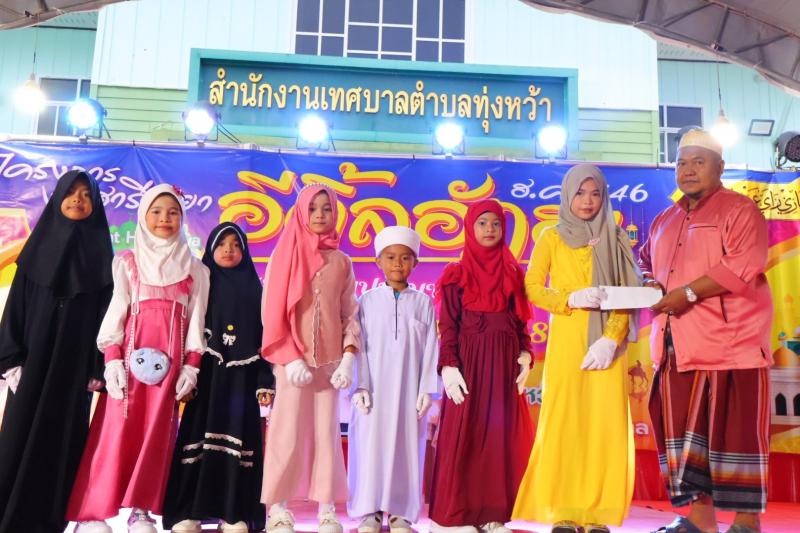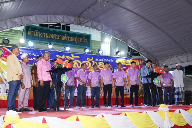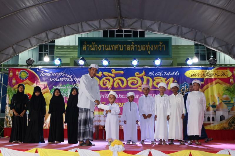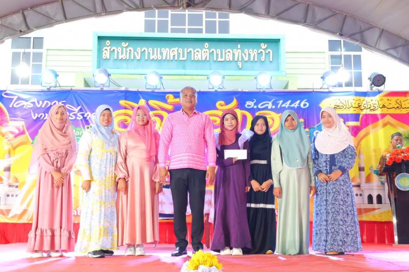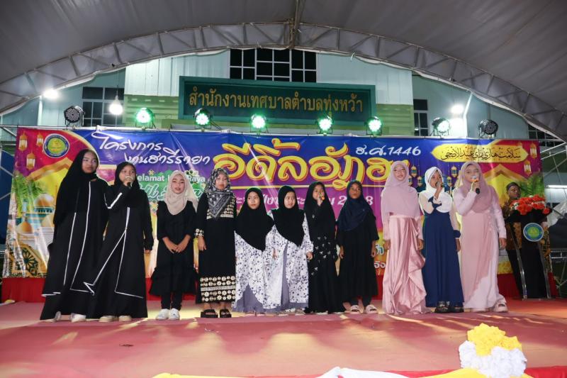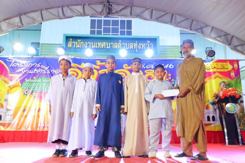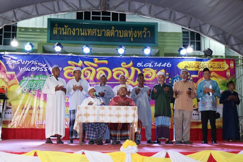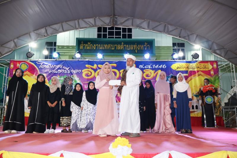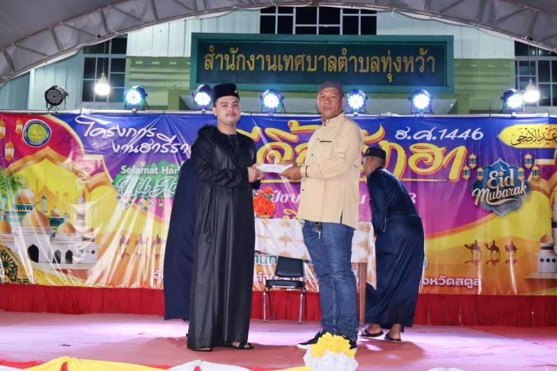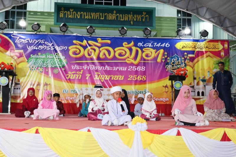 รายละเอียด : เทศบาลตำบลทุ่งหว้าได้จัดงานฮารีรายา อีดิ้ลอัฎฮา ฮ.ศ.1446 ในรายาแรกของอีดิ้ลอัฎฮา โดยกิจกรรมภายในงานประกอบด้วย การแสดงทางด้านศาสนาของเด็กตาดีกาในเขตอำเภอทุ่งหว้า การอานาเชด การบรรยายธรรมทางศาสนาของเด็ก การอาซาน การบรรยายธรรมจากผู้นำศาสนา โดยมีนายโรม กลัดทอง ผู้อำนวยการกองการศึกษา รักษาราชการแทนปลัดเทศบาล ปฎิบัติหน้าที่นายกเทศมนตรีตำบลทุ่งหว้า กล่าวรายงาน นายกริชชัย ภู่ฉุน นายอำเภอทุ่งหว้า กล่าวเปิดพิธี พร้อมด้วยคณะผู้บริหาร ข้าราชการ พนักงานเทศบาล เข้าร่วมกิจกรรม ณ หน้าสำนักงานเทศบาลตำบลทุ่งหว้า เทศบาลตำบลทุ่งหว้าขอขอบคุณผู้เข้าร่วมทำบุญทุกท่าน (นูหรี) ที่ร่วมออกบูธอาหารทั้งหมดกับงานฮารีรายา อีดิ้ลอัฎฮาในปีนี้ รวมถึงผู้ที่เข้าร่วมกิจกรรมบนเวที และพี่น้องประชาชนทุกท่าน ขอให้ท่านมีสุขภาพที่แข็งแรง มีริสกีที่เพิ่มพูน ขอให้พระองค์อัลลอฮฺตอบรับในทุกดุอาของท่าน