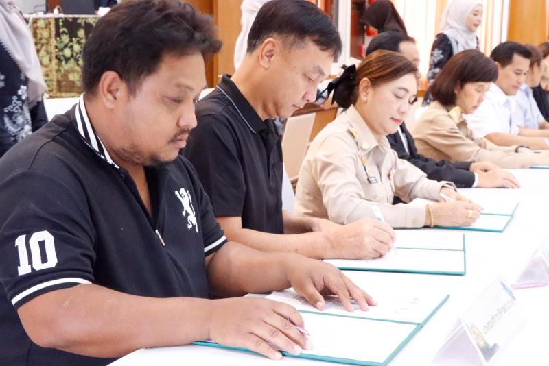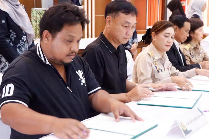 รายละเอียด : นายเสนีย์ อนันตอัมพร นายกเทศมนตรีตำบลทุ่งหว้า ร่วมลงนามบันทึกข้อตกลงความร่วมมือ (MOU) ขับเคลื่อนการดำเนินงาน “อนามัยแม่และเด็ก 1,000 วันแรกของชีวิต” โดยมีนางสาวดุษฎี พฤกษเศรษฐ รองผู้ว่าราชการจังหวัดสตูล เป็นประธานในพิธีเปิด นายสัมฤทธิ์ เลียงประสิทธิ์ นายกองค์การบริหารส่วนจังหวัดสตูล กล่าวรายงานวัตถุประสงค์ของการจัดงาน