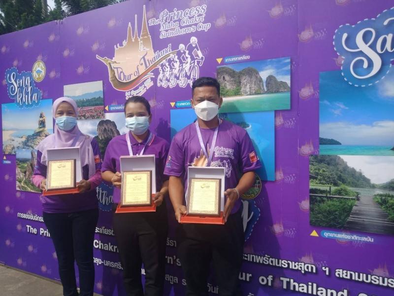 รายละเอียด : วันที่ 6 ธันวาคม 2564 ผู้ว่าราชการจังหวัดสตูล ได้มอบโล่เกียรติคุณให้แก่หน่วยงานที่ร่วมสนับสนุนการจัดการแข่งขันจักรยานทางไกลนานาชาติเฉลิมพระเกียรติสมเด็จพระกนิษฐาธิราชเจ้า กรมสมเด็จพระเทพรัตนราชสุดาฯ สยามบรมราชกุมารี รายการ “The Princess Maha Chakri Sirindhorn’s Cup Tour of Thailand 2021” ที่ทำให้การแข่งขันบรรลุตามวัตถุประสงค์ที่ตั้งไว้ ในการนี้ นายเสนีย์ อนันตอัมพร นายกเทศมนตรีตำบลทุ่งหว้า มอบหมายให้ นายธนวรรธ ธรรมชูโชติ เลขานุการนายกเทศมนตรีตำบลทุ่งหว้า เข้ารับมอบโล่เกียรติคุณการจัดการแข่งขันจักรยานทางไกลนานาชาติ 2021 ณ องค์การบริหารส่วนจังหวัดสตูล