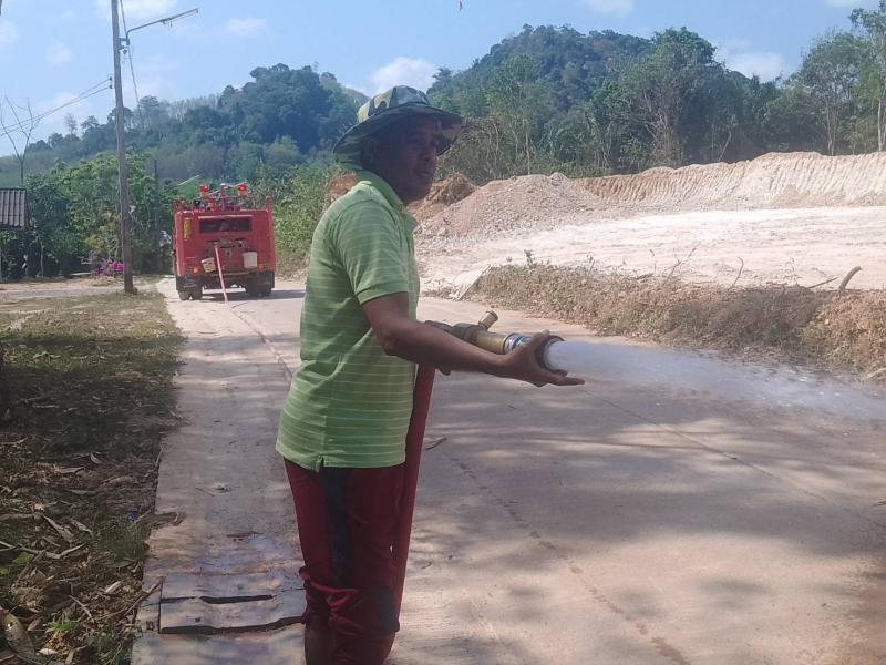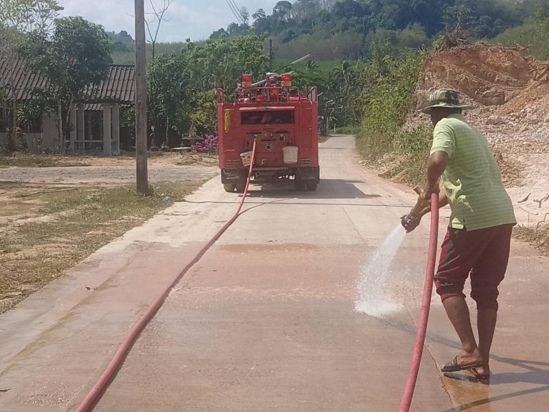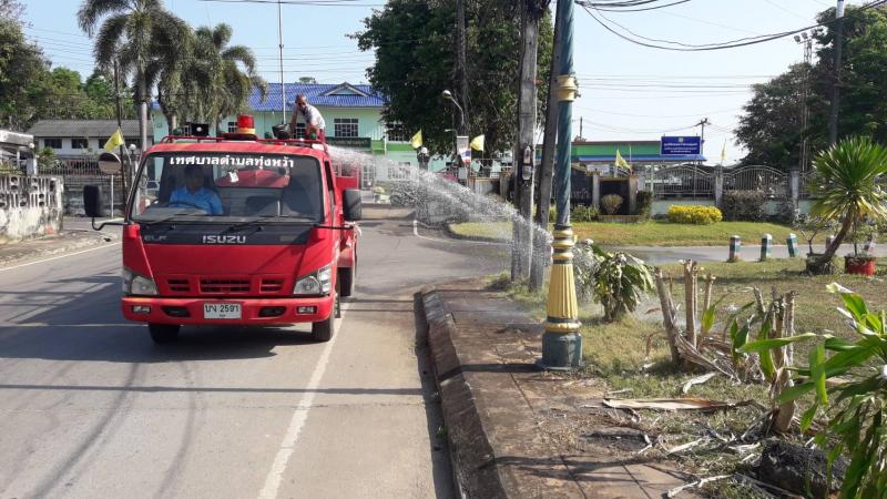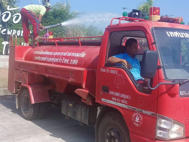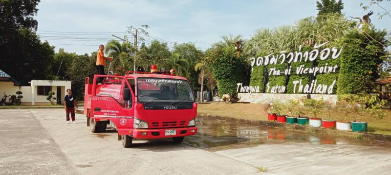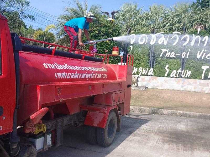 งานป้องกันบรรเทาสาธารณภัยเทศบาลตำบลทุ่งหว้า รดน้ำต้นไม้บริเวณหน้าเทศบาลฯ สามแยกโรงน้ำ และจุดชมวิวท่าอ้อย