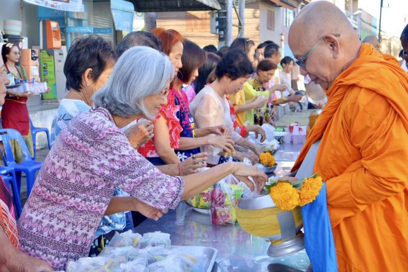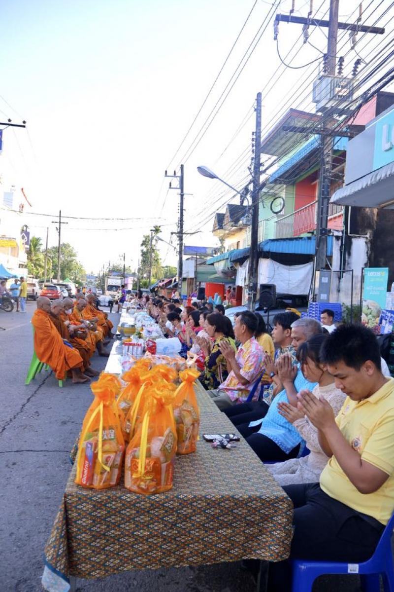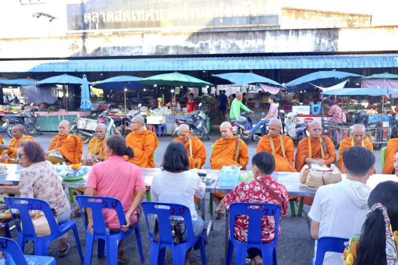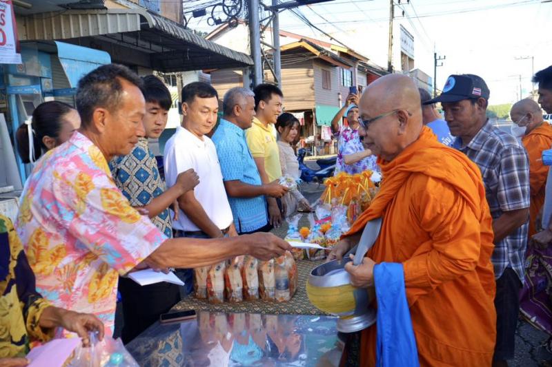 เทศบาลตำบลทุ่งหว้าจัดพิธีทำบุญตักบาตรเนื่องในวันสงกรานต์ 2568
