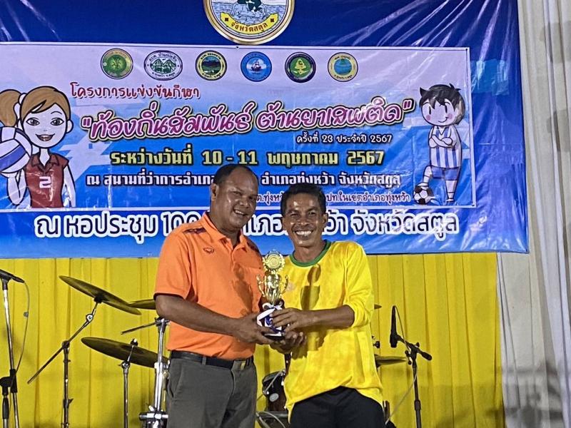 รายละเอียด : เทศบาลตำบลทุ่งหว้า ร่วมการแข่งขันกีฬาท้องถิ่นสัมพันธ์ ต้านยาเสพติด ครั้งที่ 23 ประจำปี 2567 ในระหว่างวันที่ 10 - 11 พฤษภาคม 2567 ณ สนามกีฬาหน้าที่ว่าการอำเภอทุ่งหว้า จัดการแข่งขันโดย องค์การบริหารส่วนตำบลทุ่งหว้า