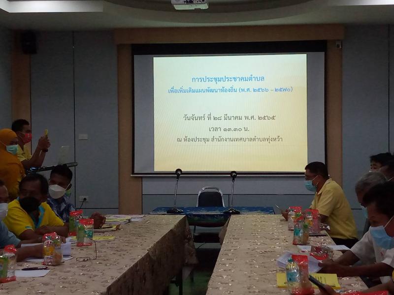 รายละเอียด : เทศบาลตำบลทุ่งหว้า จัดประชุมประชาคมตำบลเพื่อเพิ่มเติมแผนพัฒนาท้องถิ่น (พ.ศ.2566-2570) ในวันจันทร์ที่ 28 มีนาคม 2565 เวลา 13.30 น. ณ ห้องประชุมสำนักงานเทศบาลตำบลทุ่งหว้า ชั้น 2