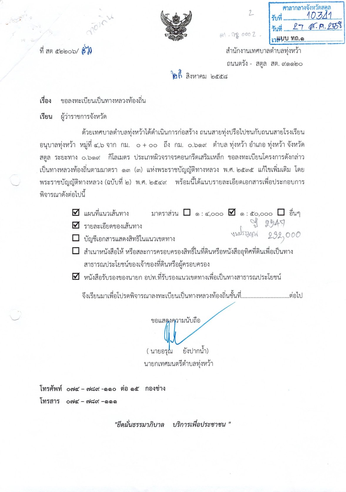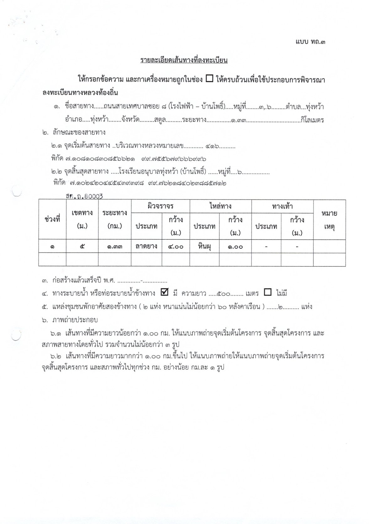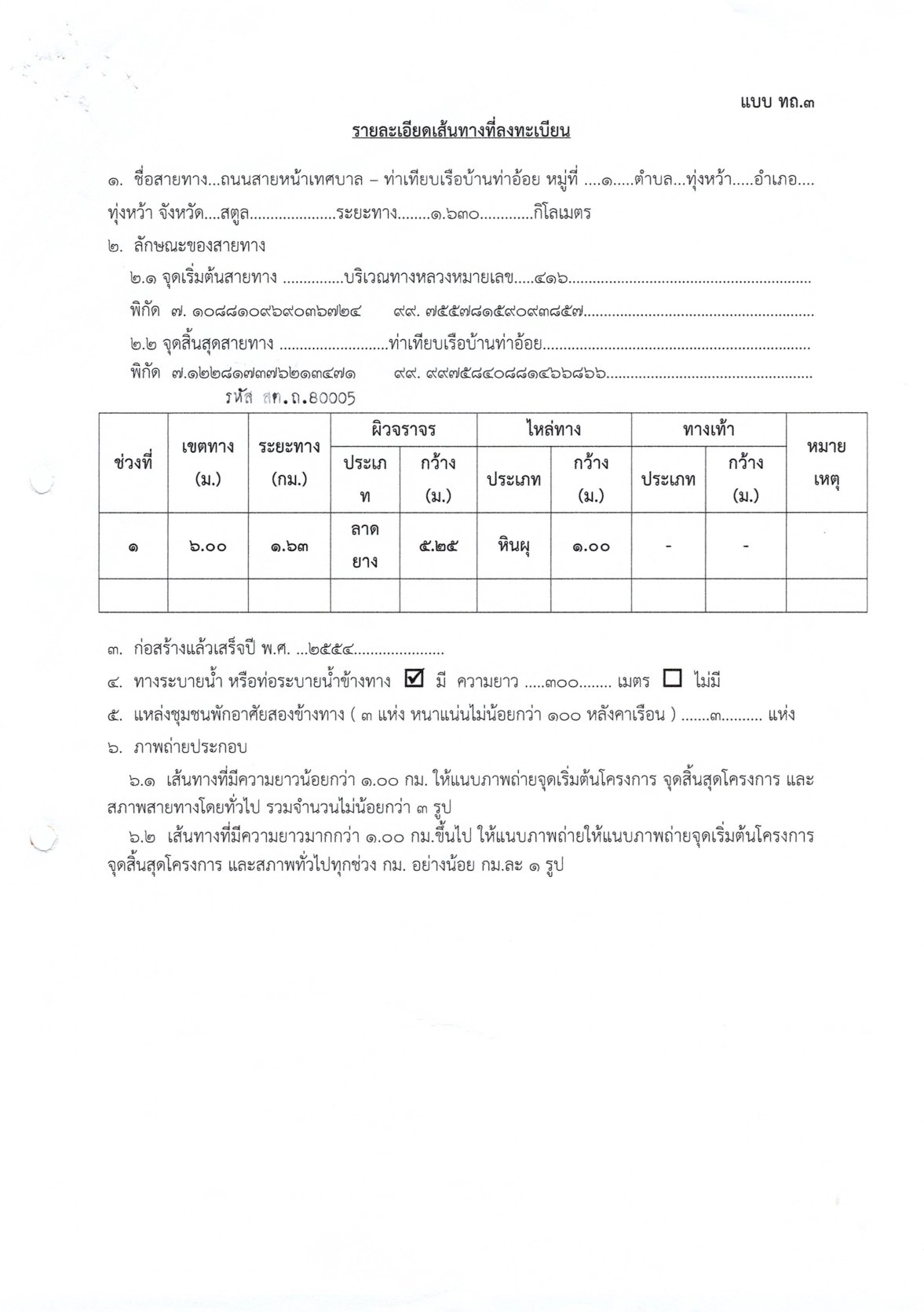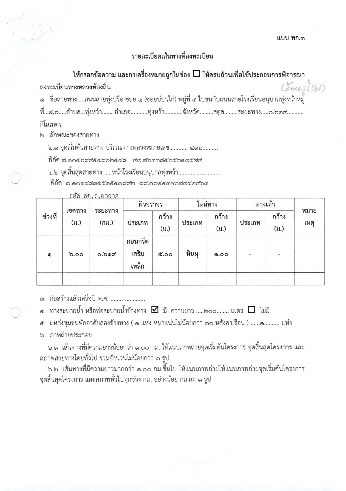 ทะเบียนทางหลวงท้องถิ่นเทศบาลตำบลทุ่งหว้า