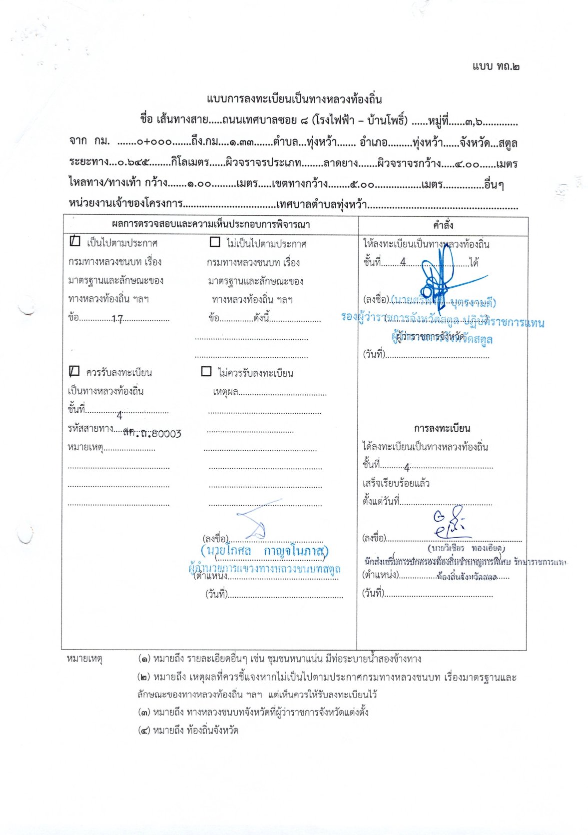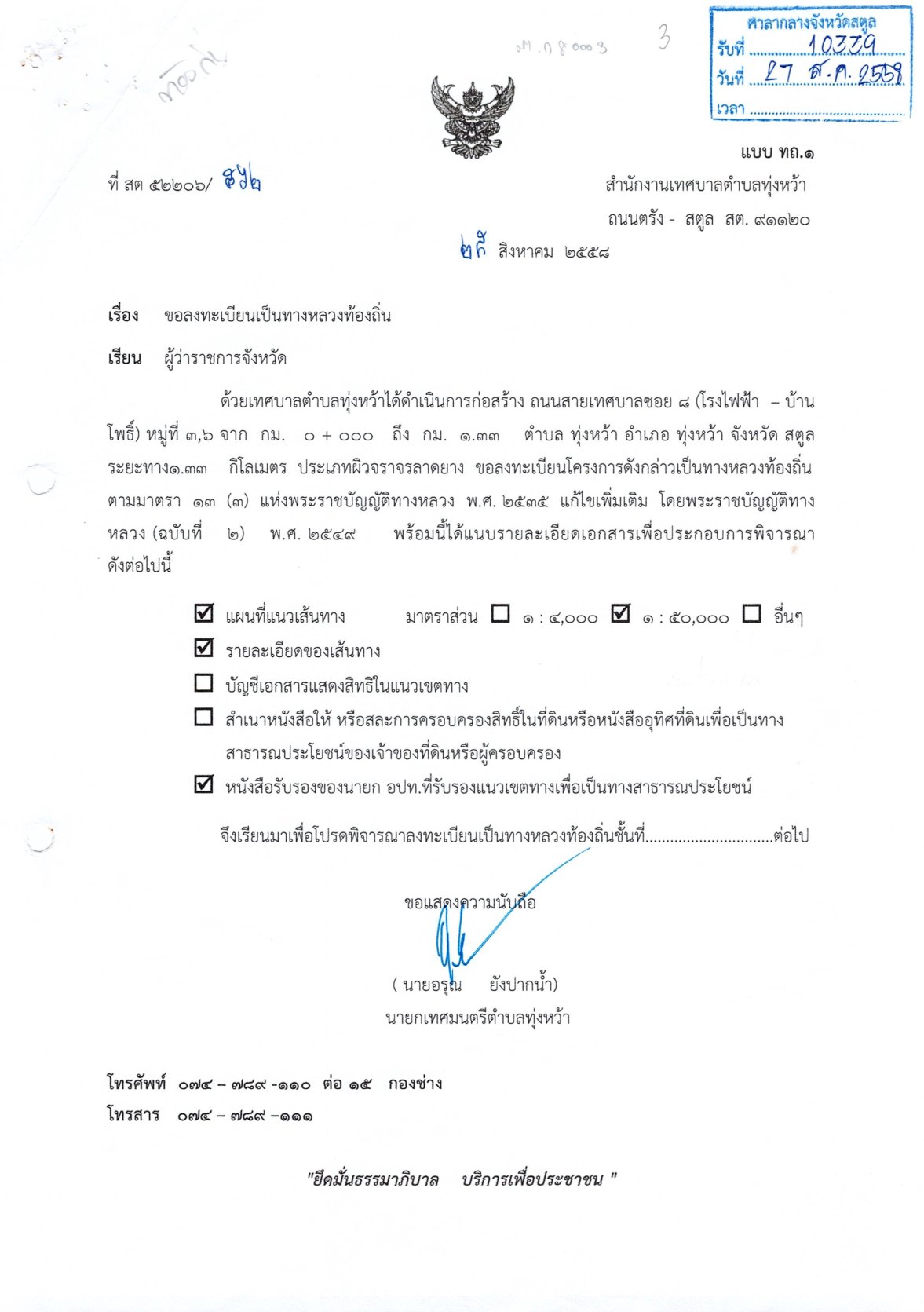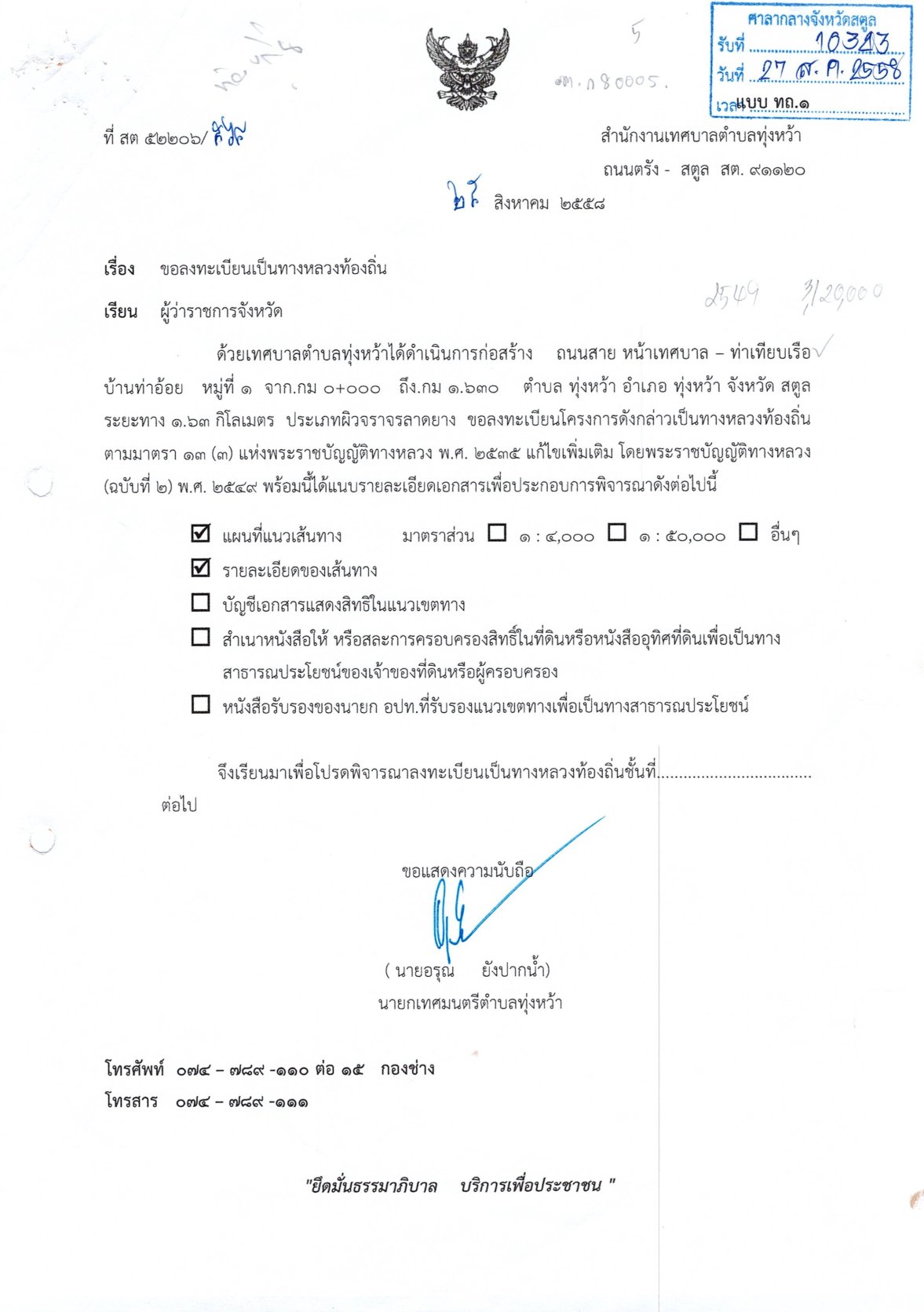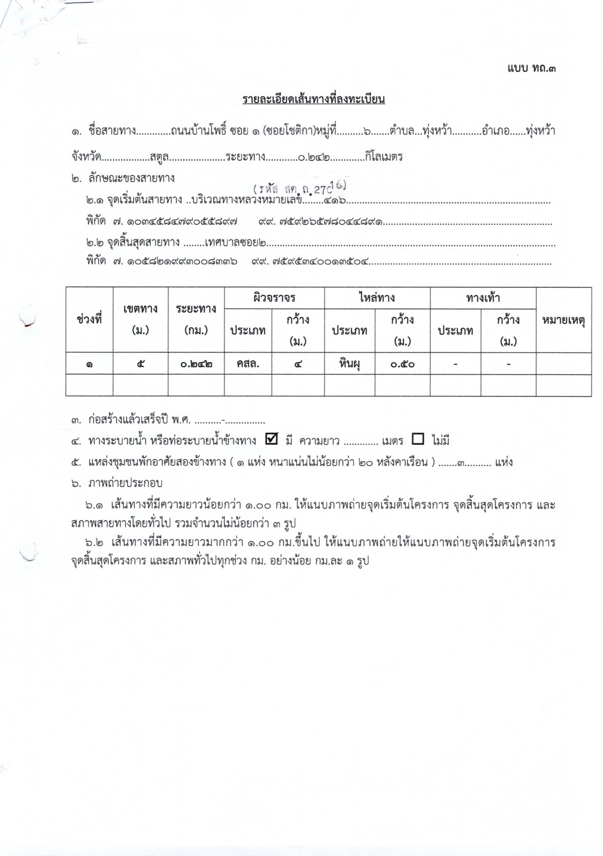 ทะเบียนทางหลวงท้องถิ่นเทศบาลตำบลทุ่งหว้า