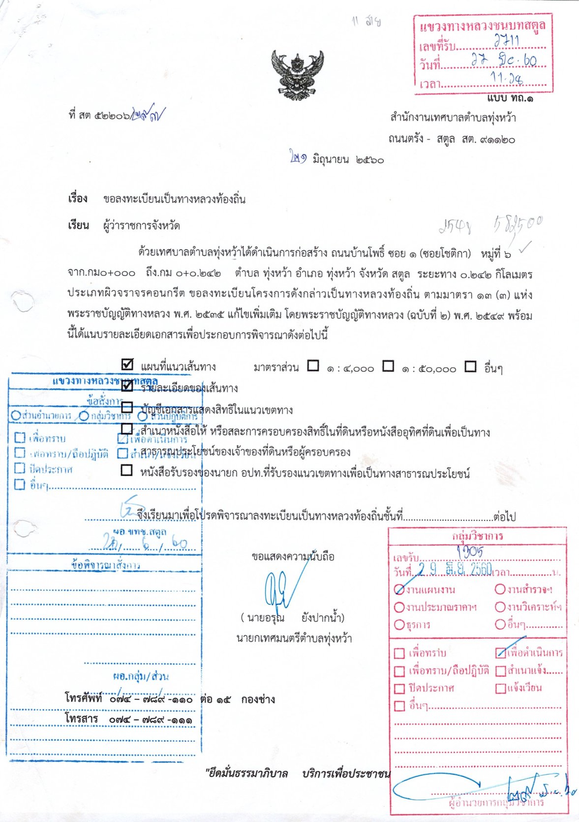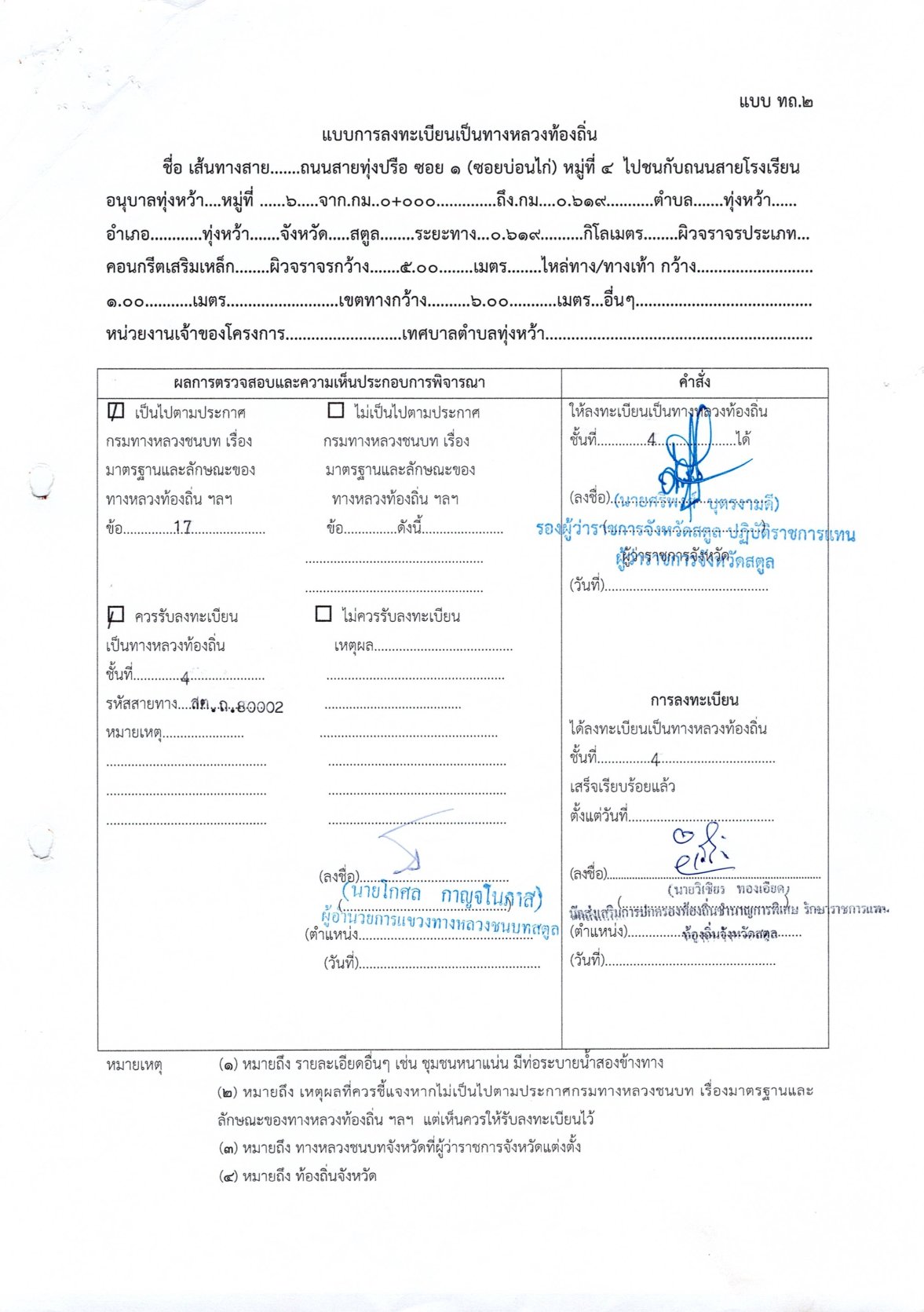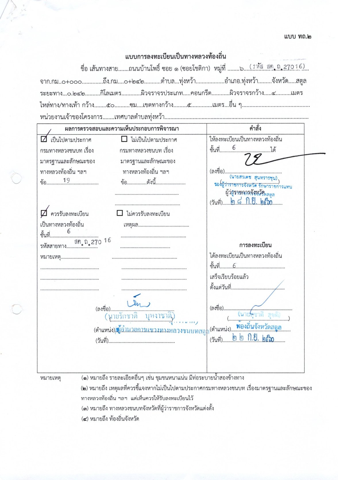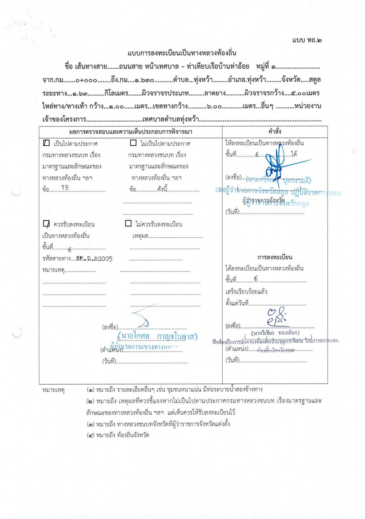 ทะเบียนทางหลวงท้องถิ่นเทศบาลตำบลทุ่งหว้า