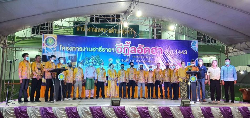 กองการศึกษา เทศบาลตำบลทุ่งหว้า จัดโครงการงานวันฮารีรายาอีฎิ้ลอัดฮา ฮ.ศ. 1443 วันที่ 10 กรกฎาคม. 2565 ณ บริเวณหน้าสำนักงานเทศบาลตำบลทุ่งหว้า (95 ภาพ) [10 กรกฎาคม 2565]