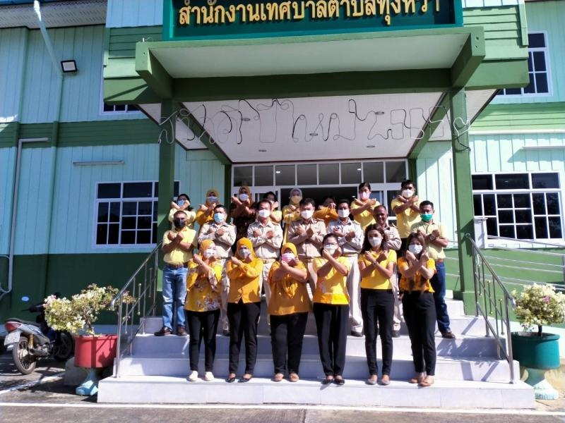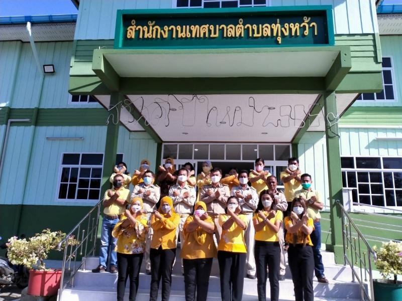 นายเสนีย์ อนันตอัมพร นายกเทศมนตรีตำบลทุ่งหว้า พร้อมด้วยคณะผู้บริหาร ข้าราชการ ลูกจ้างประจำและพนักงานจ้าง เทศบาลตำบลทุ่งหว้า ร่วมกล่าวประกาศเจตนารมณ์ต่อต้านการทุจริต(6 ภาพ)
